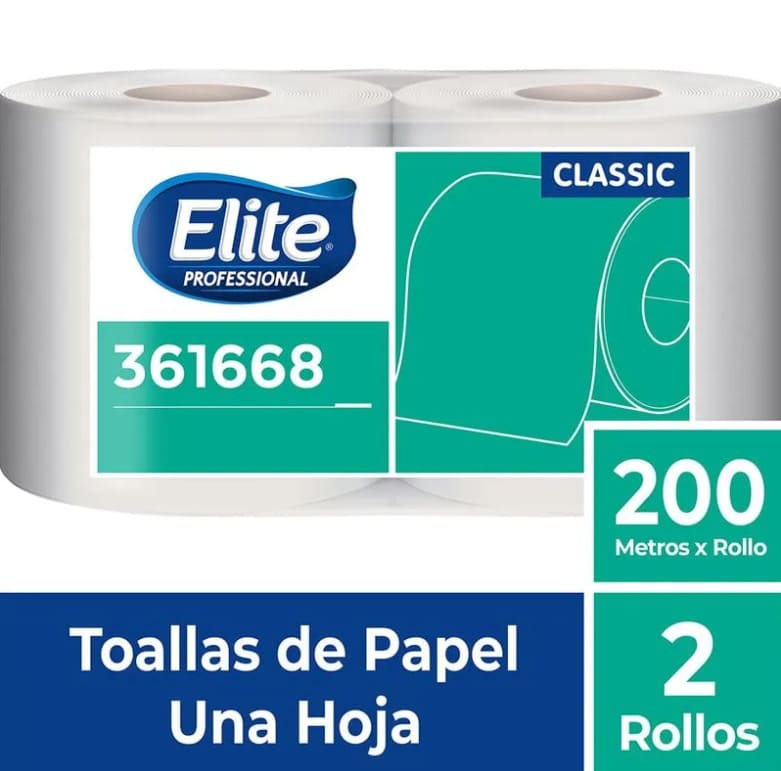 Papel toalla 2 rollos x 200mts natural classic 361759 elite